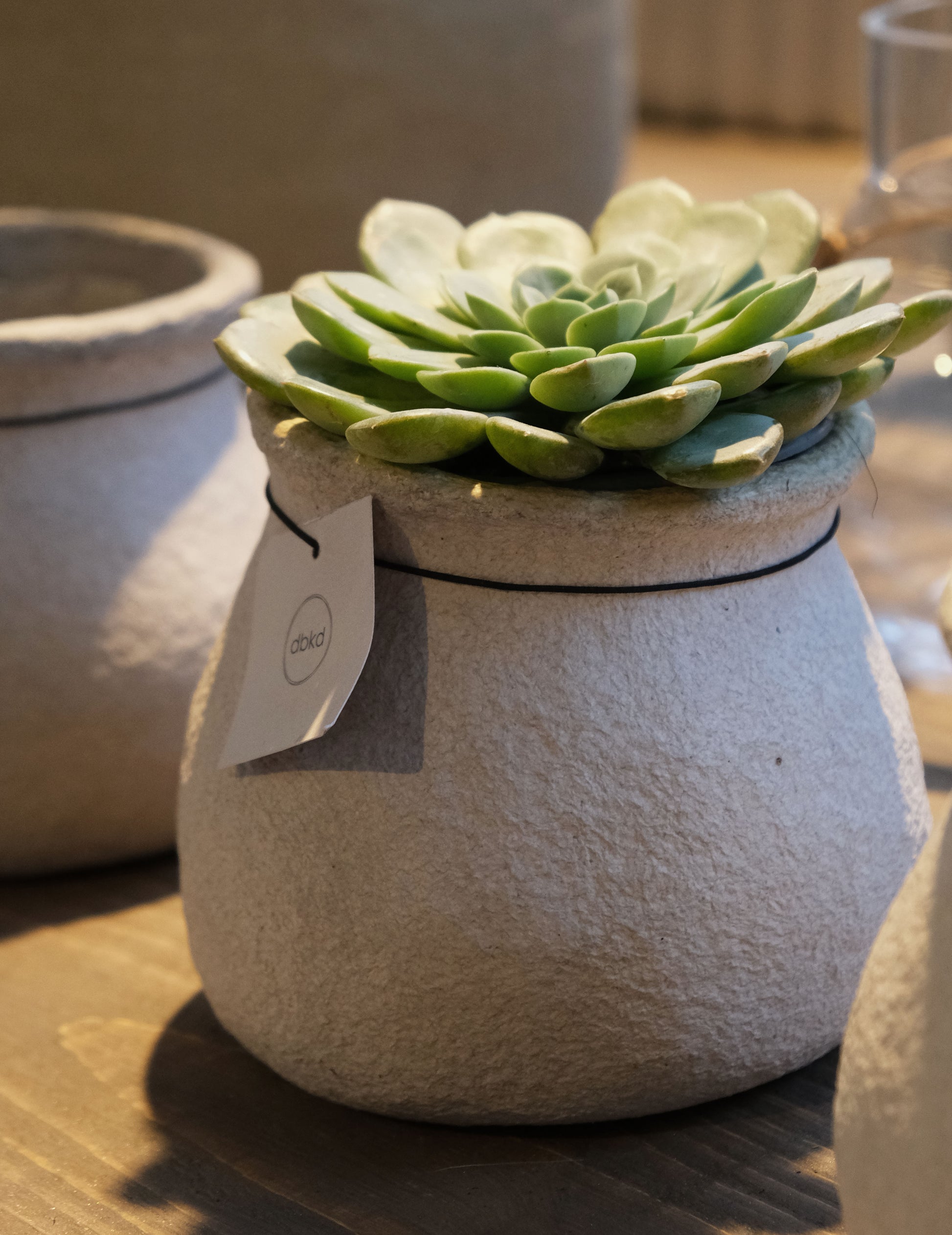 Der Papier-Blumentopf von DBKD aus der beliebten Paper-Kollektion verbindet skandinavisches Design mit nachhaltigem Materialbewusstsein. Gefertigt aus recyceltem Papiermaché, überzeugt er durch seine organische Form, die jedem Raum eine weiche Note verleiht.