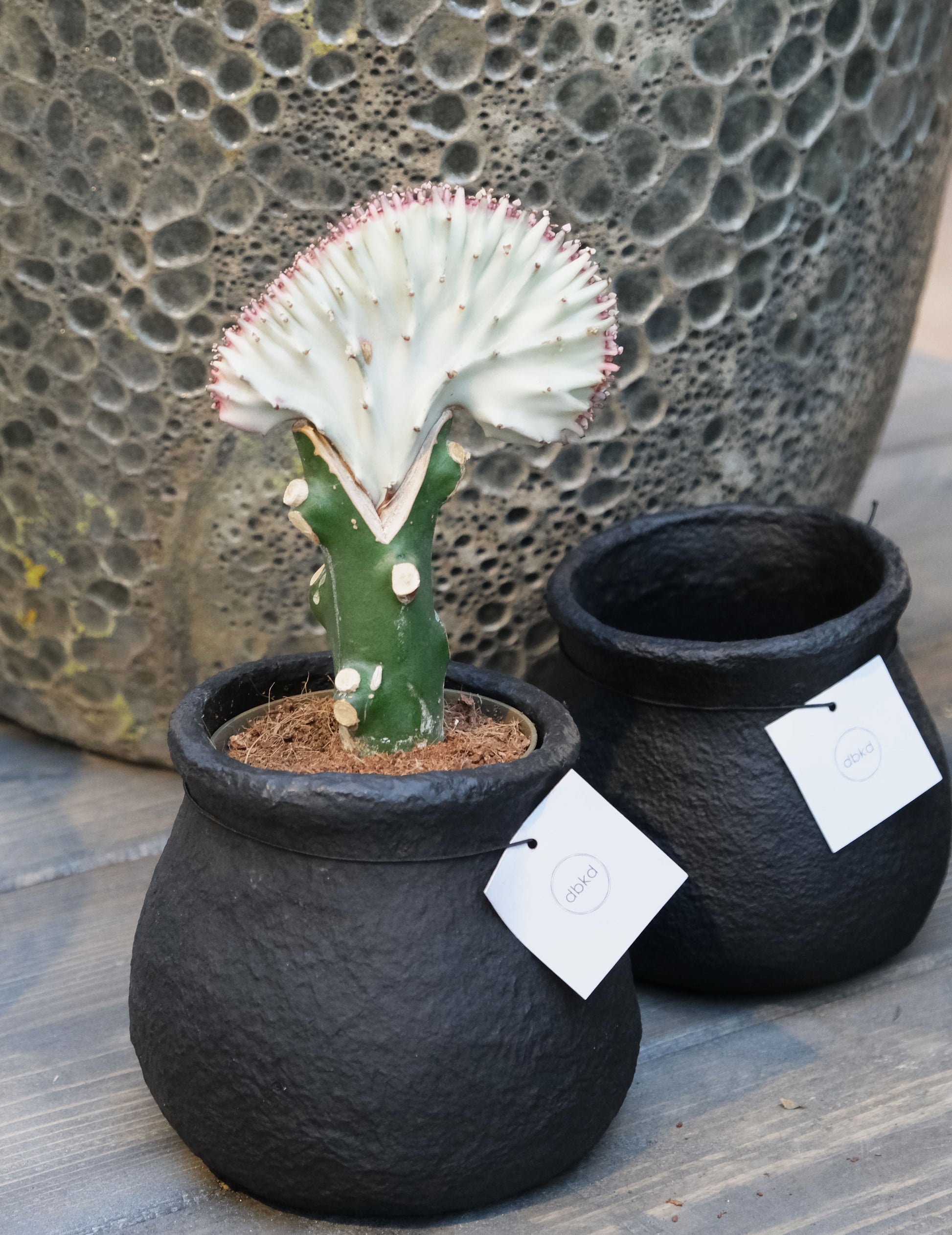 Dank der lackierten Innenseite ist der Topf wasserdicht und somit ideal geeignet für kleine Pflanzen. Ob einzeln auf der Fensterbank oder in Gruppen arrangiert – er sorgt für ein stilvolles, natürliches Ambiente.