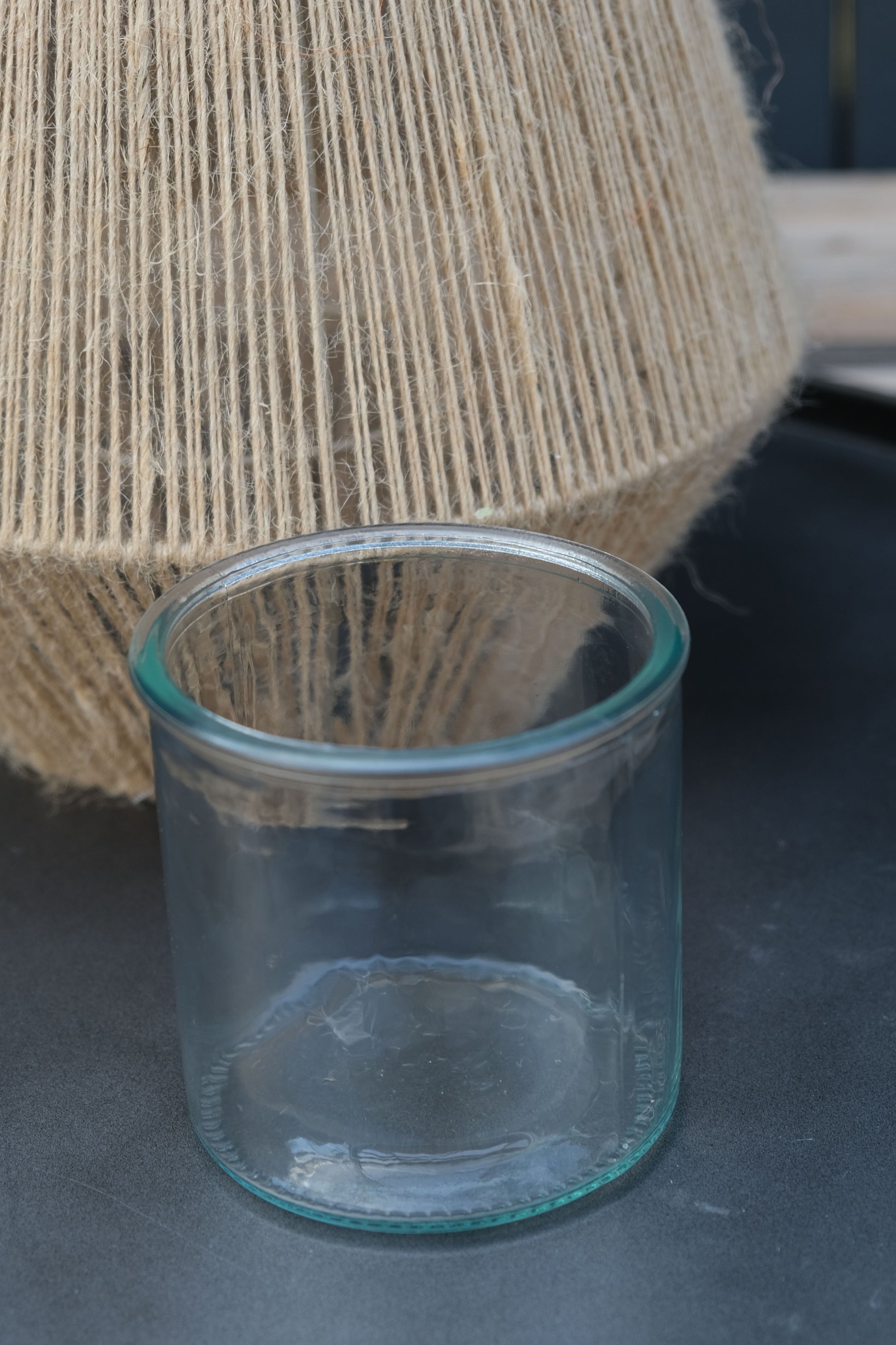 - Material: Jute mit Glaseinsatz